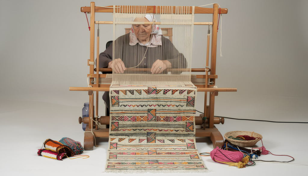 Nos tapis sont fabriqués à la main avec un savoir-faire ancestral transmis de génération en génération. Chaque détail est soigneusement travaillé pour garantir une qualité exceptionnelle et une durabilité remarquable.